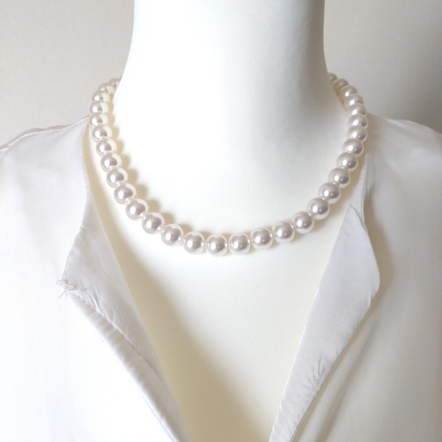 10mmパールネックレス 程よい大きさのパールでシンプルなデザインですので、様々なシーンで活躍してくれると思います。 カジュアルな装いでもパールネックレスをプラスすれば、お洒落感がup❗ 6cmのアジャスターが付いていますので、長さ変更も可能です。 長さ 約41cm+約6cm パール大きさ 10mm 発送は追跡可能のレターパックですので、安心してご購入頂けます。 ご購入後のお客様のご都合での交換などは、お受けできません。 万が一、不良品などの場合は、お手元に到着後、 1週間以内にご連絡下さいませ。 ご使用後は布等で拭いて頂ければ、長くお使い頂けますよ。 水に濡らしたり、使い方次第では、劣化を早めてしまう恐れがございます。 またご使用になり、お肌に痒みや赤みなどの 異常が出た場合には、速やかにご使用をやめ、 専門医にご相談下さい。
