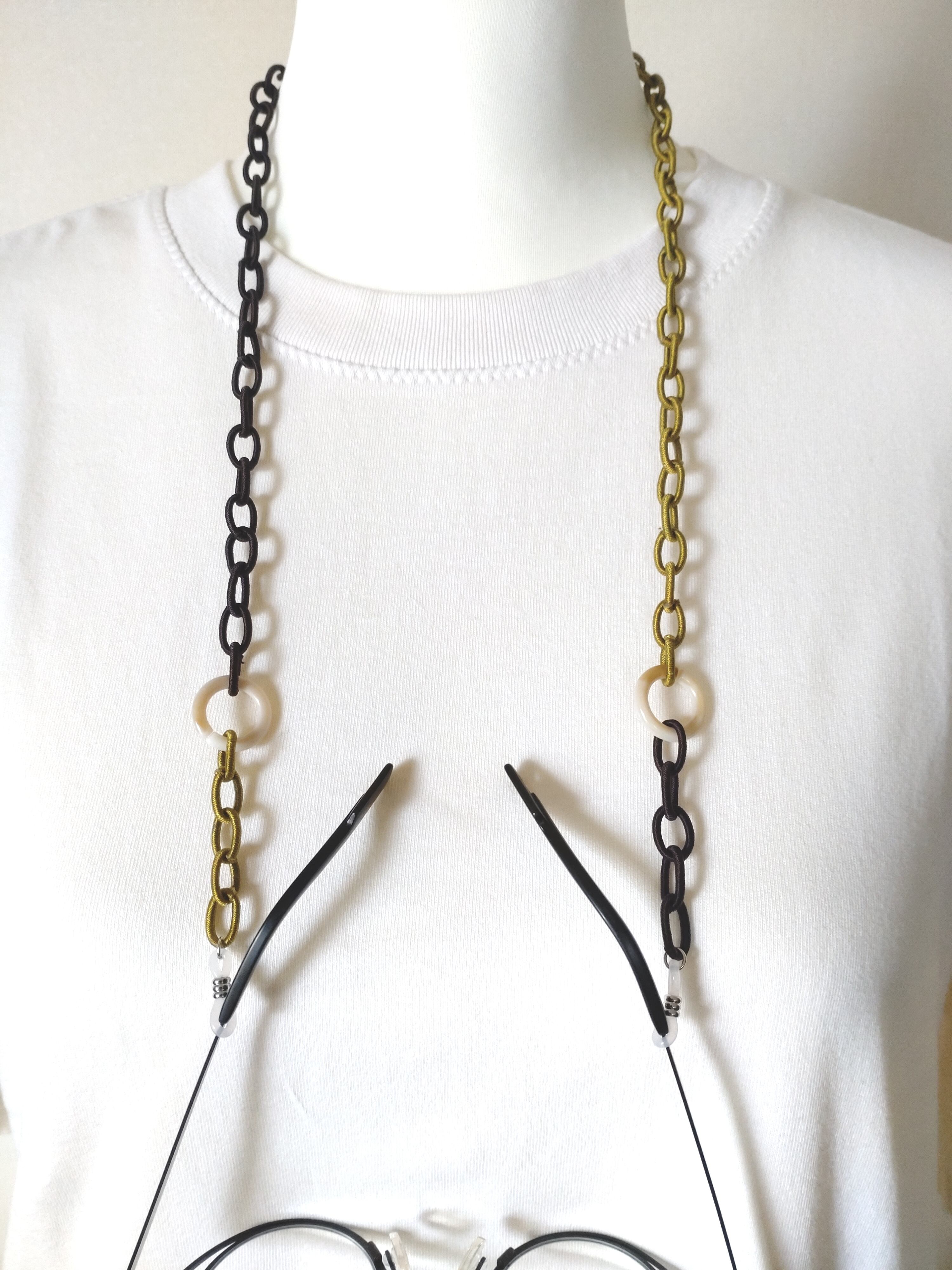 ☆送料無料☆ メガネチェーン バイカラー アシンメトリーデザイン 男女兼用 グラスコード サングラスチェーン メガネアクセサリー ハンドメイド